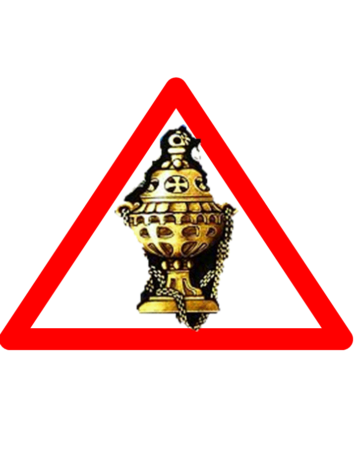 As a result of this, people assume that the only road-type sign that is allowed in churches is the "No Smoking" sign. Far from the truth. Loads of them are authorized, but not used as much as maybe they should be. We reproduce a few here. If churches only started using them, we wouldn't have to look at "No Smoking" signs so much. And that could only be a good thing. After all, who ever smoked in church? Only Anglo-Catholics. And that is only when they catch their chasubles on a thurible.