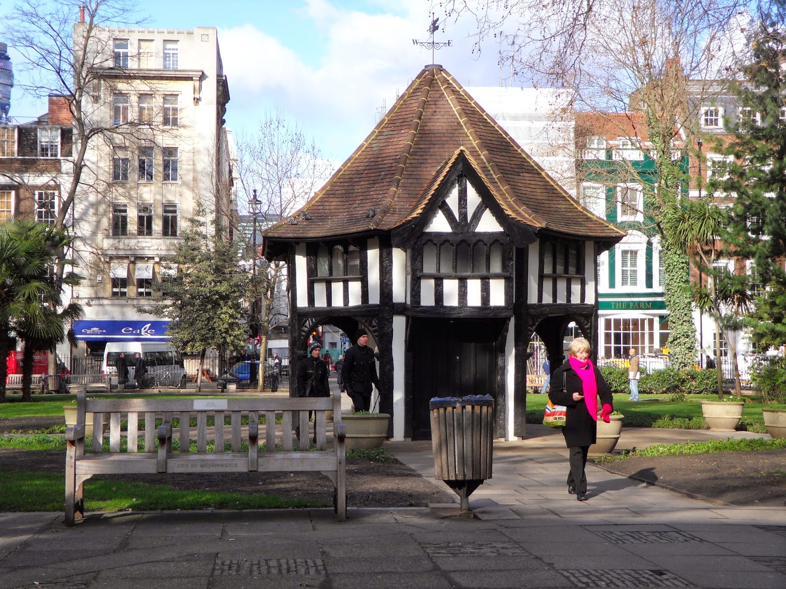 Maiden aunts cycling to the Moot House through the evening (fake) snow and (dry ice) mist came a right cropper. Well, cycling maiden aunts aren't best suited to cobbles. Aggie completely lost control in a skid on the frozen cobbles, sent a side of Morris Men flying in all directions, through the doors of the Rose and Crown, and smashed into the vicar, out for a pre-Christmas dry sherry with a bunch of chirpy Cockernees who were drinking warm beer while wearing pearly outfits.
